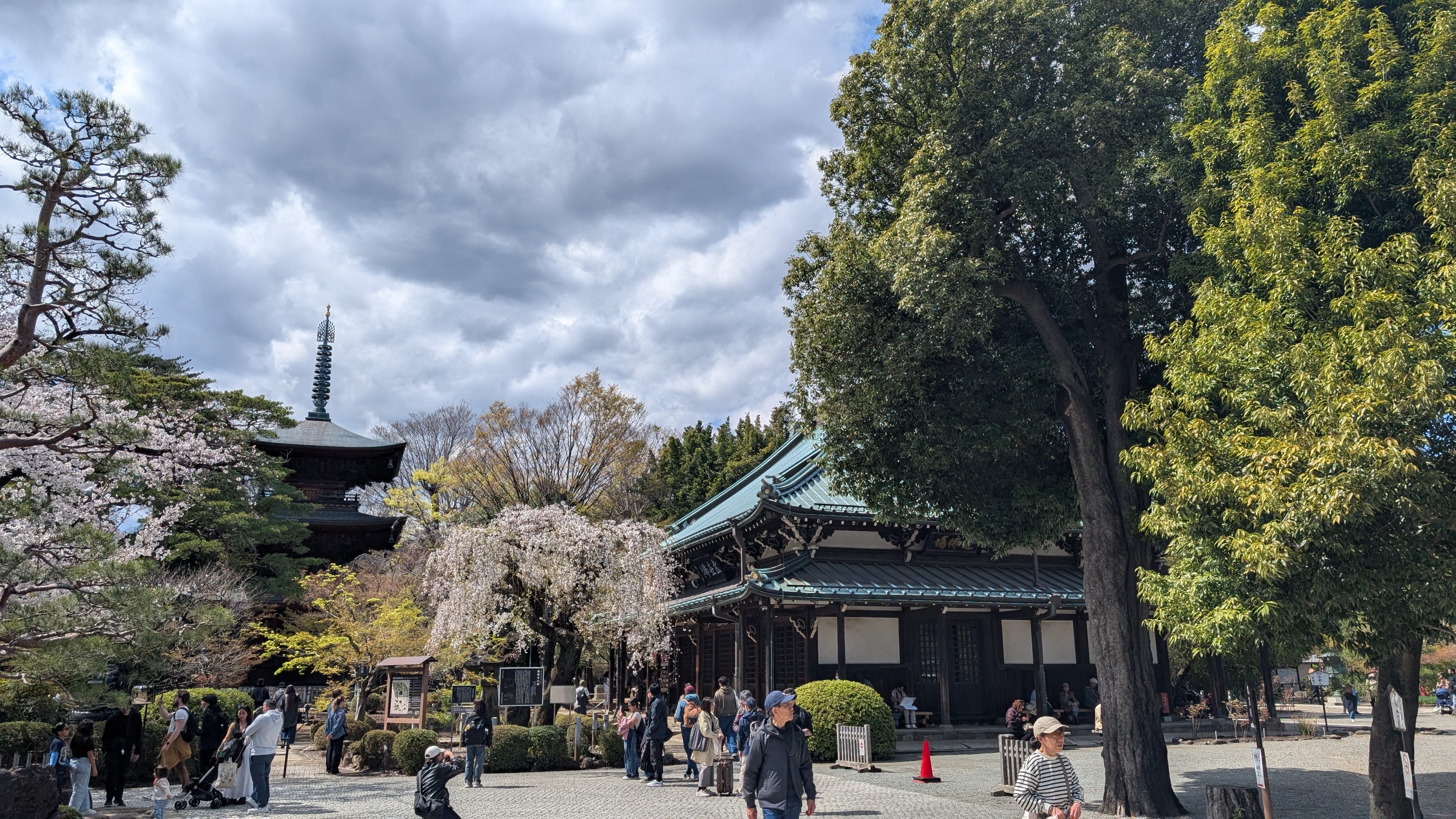I walked to Gōtokuji on a Friday morning. Many people were visiting to see the cherry blossoms at the temple, which features a three-tiered pagoda. It was calm and tranquil, and the weather was perfect.