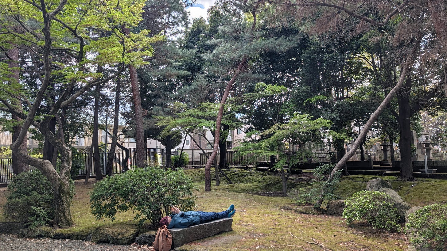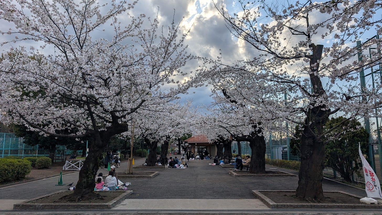 I’m sitting on a park bench, alone, in Hanegi park. The sun is going down, it is getting a little chilly, and I’m staring at a cherry tree while two children chase each other with sticks they found. An old couple, at least in their eighties, walks by slowly, holding hands. A group of friends meet up at the bench next to mine, and they’ve each brought snacks to share and a couple of beers to drink. A young woman with two Akita dogs wearing matching blue shirts, walks past me. I faintly smell barbeque, but I can’t figure out where it is coming from. It smells really good.