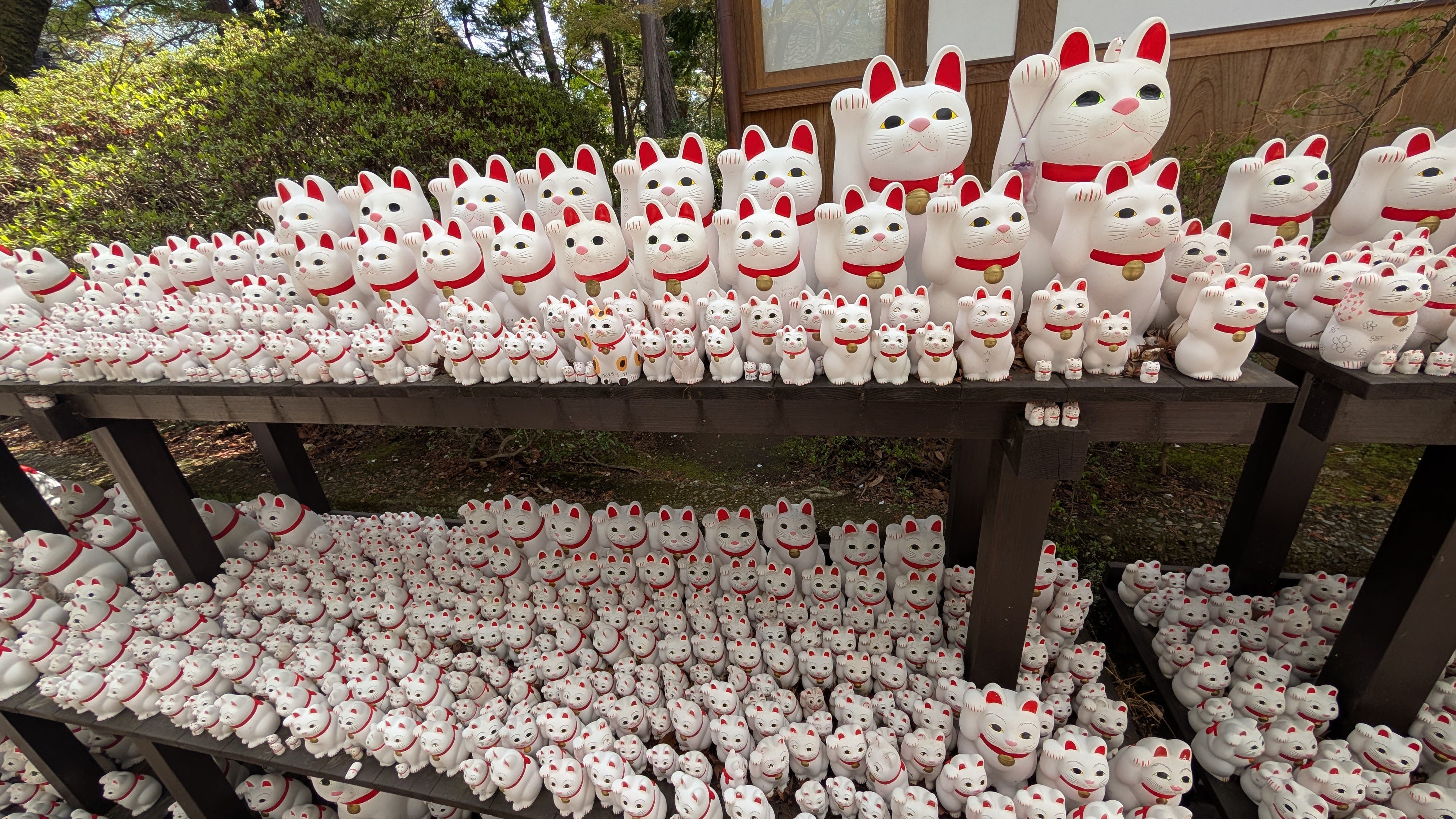 There are many temples, shrines, and parks in Setagaya, but the most famous is Gōtokuji Temple. Gōtokuji is the birthplace of the maneki-neko, the beckoning cat. According to legend, during the early 17th century, Ii Naotaka was invited into the temple by a cat, which led him to safety from a sudden thunderstorm. In gratitude, Naotaka designated the temple as the family temple of the Ii clan, leading to its prosperity.
